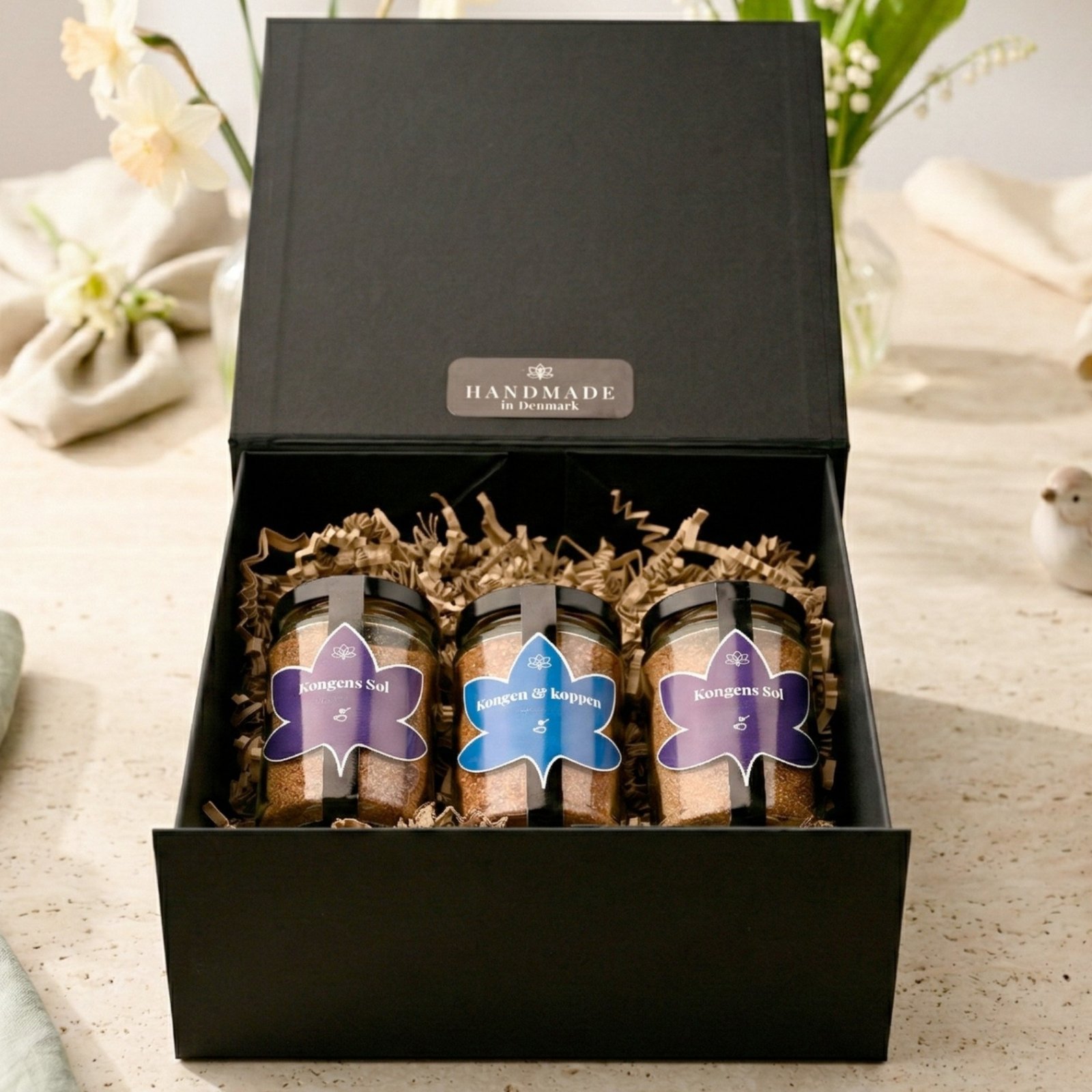 Hver eneste æske bærer præg af vores kærlighed til faget. Vi blander alt i små batches her i landet for at sikre, at balancen er præcis, som den skal være. Når modtageren åbner låget og ser "Handmade in Denmark"-stemplet, ved de, at de sidder med noget unikt.